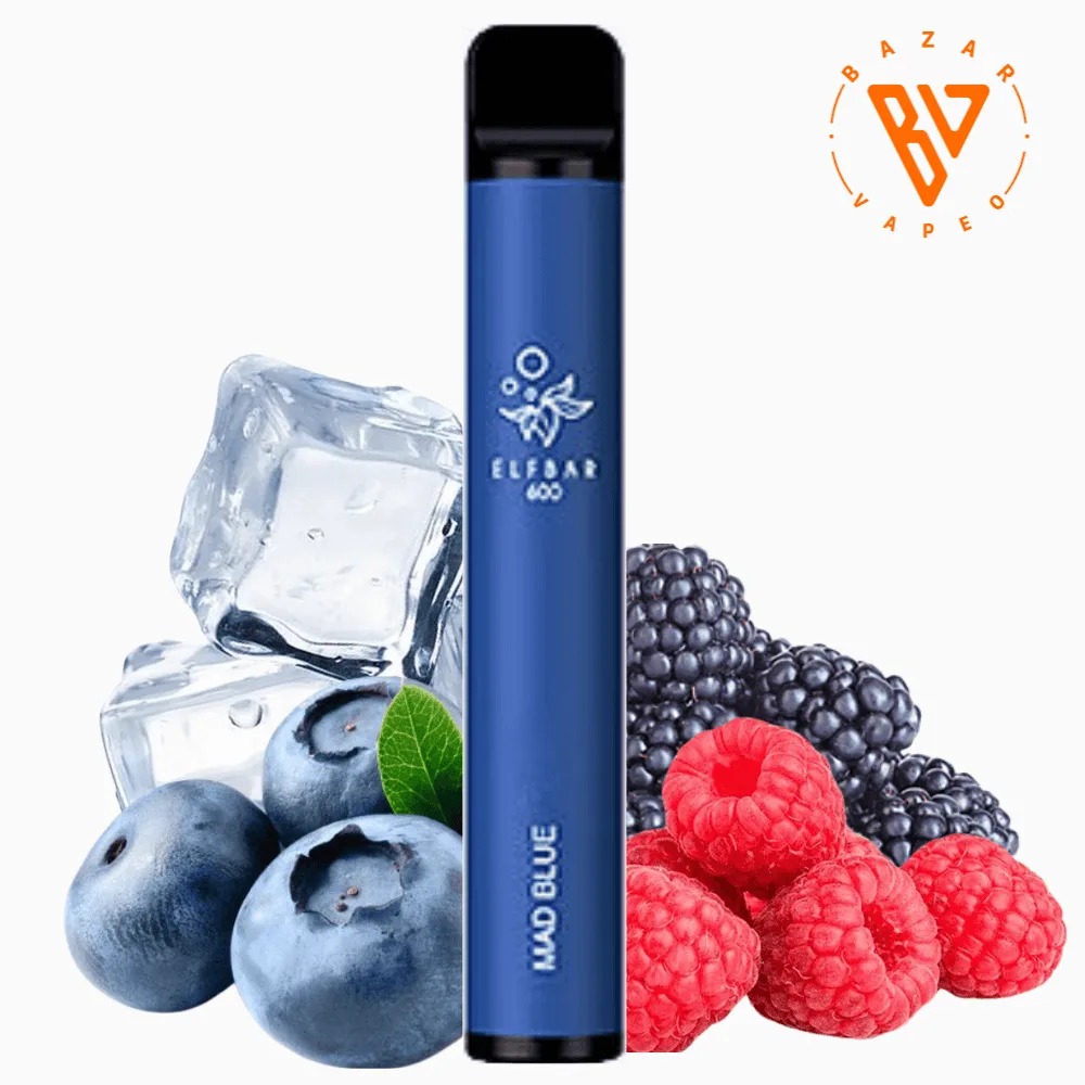 ElfBar 600 Mad Blue nos deleita en esta ocasión con una mezcla de arándanos, frambuesas y moras que te quitará hasta el hipo. Disfruta en cada calada de este maravilloso vaper desechable y siente cada nota de sabor.