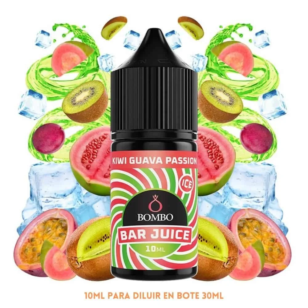 Bombo Bar Juice Kiwi Guava Passion Ice Mini Longfill es la opción ideal para hacer alquimia con sales de nicotina y conseguir un sabor que une kiwi, maracuyá, guayaba y mucho hielo.