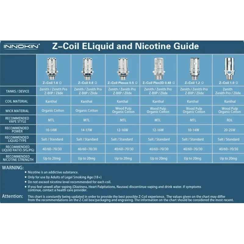 Las resistencias Innokin Serie Z son compatibles para Innokin Zenith, Innokin Zlide Tank 2ml, Zenith Pro Thanks y Innokin Gozee Kit