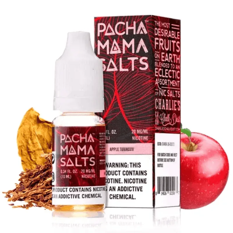 Pachamama Salts Apple Tobacco ofrece un sabor perfecto para aquellos que buscan un golpe suave de garganta, una mezcla perfecta de dulces manzanas viariadas con hojas de tabaco selecto.