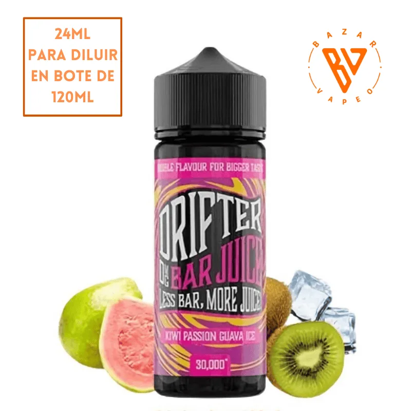 El nuevo AromaDrifter Bar Kiwi Passion Guava Longfill está destinado a los amantes de los aromasafrutados que quieran disfrutar de este mix de kiwi, maracuyá, guayaba y un toque final de hielo, ¡es una pasada!