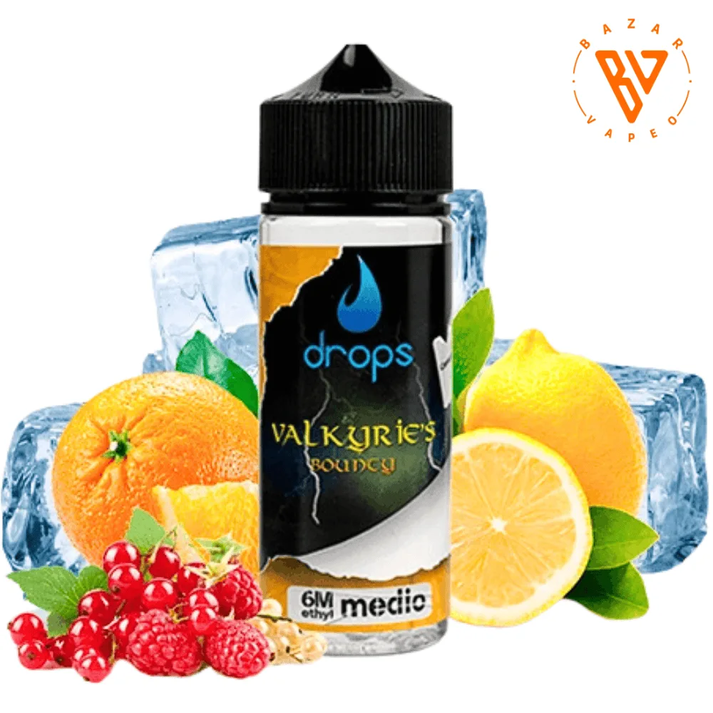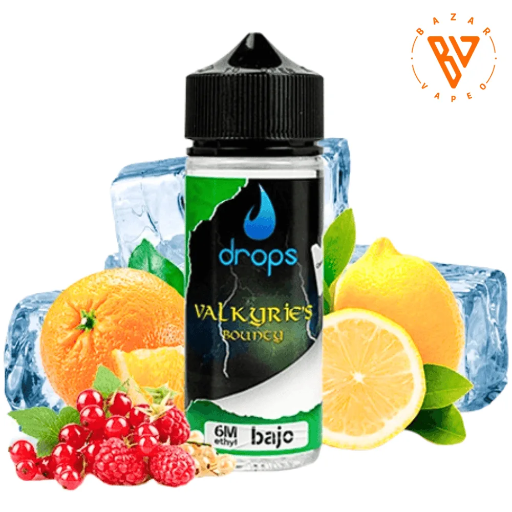 Sumérgete en una nueva experiencia de vapeo libre de nicotina pero con el 100% de satisfacción con Drops 6M Ethyl Valkyrie’s Bounty y saborea estos exquisitos frutos rojos con limón y hielo en cada calada.