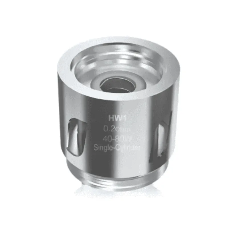 Las Eleaf HW1 Single-Cylinder SS316L son compatible con la serie de tanques Sub-ohm Eleaf Ello, cada HW1 SS316L están fabricadas con una cabeza de acero inoxidable en la parte superior, poste de contacto dorado de 24K y una mecha de algodón orgánico japonés 100% puro para brindar el mejor sabor de tu e-líquido favorito.