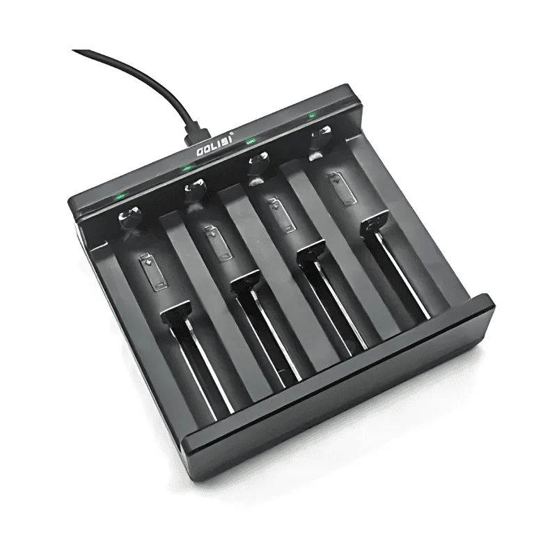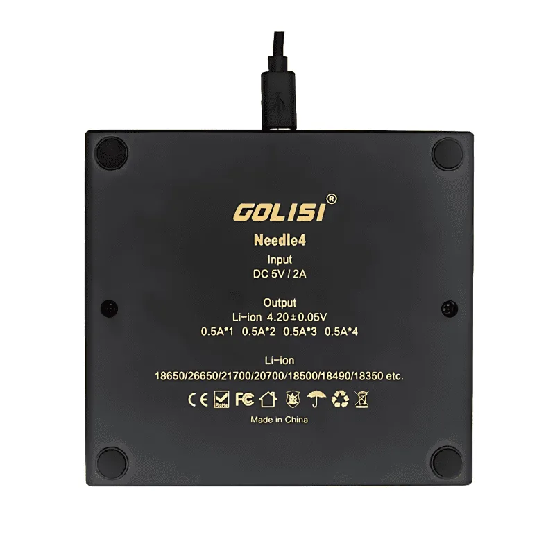 El cargador inteligente Golisi Needle 4 cuenta con 4 ranuras para cargar baterías de una manera segura y luces de indicación para informar sobre el estado de la carga.
