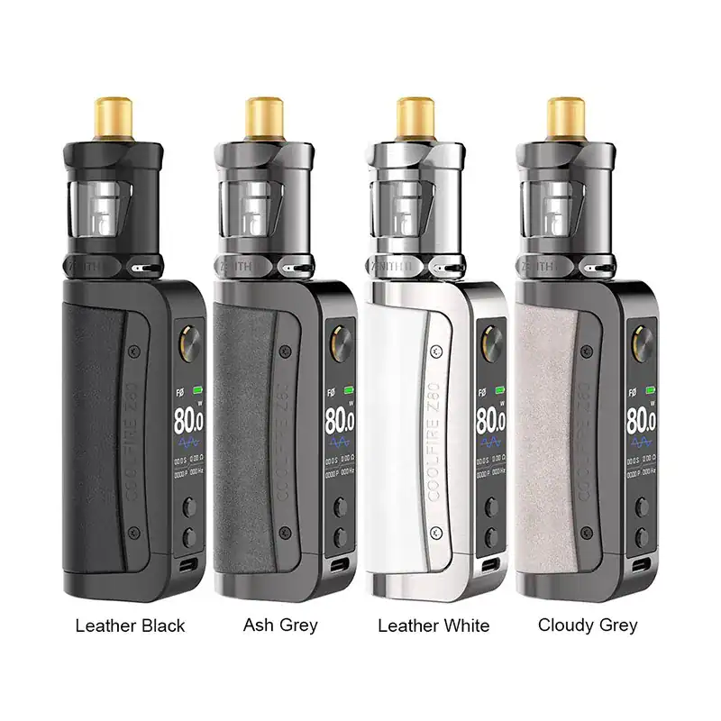 Las texturas únicas similares a la gamuza y el cuero son increíblemente ligeras y suaves al tacto. Coolfire Z80 funciona con una sola batería 18650 (no incluido) para una combinación de vapeo satisfactorio y mayor duración de la batería. Coolfire Z80 proporciona una potencia de salida de hasta 80 W y una variedad de modos de usuario innovadores, como el modo FØ, que le permite cambiar la frecuencia de la corriente alterna que va a la bobina para adaptarla a sus preferencias.