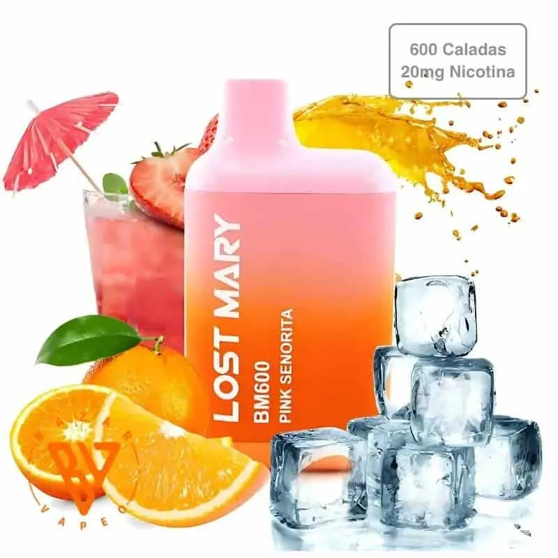 Lost Mary Pink BM600 Pink Senorita un mezcla de Naranja, limonada de fresa y hielo, todo ello unido dan como resultado este excepcional Lost Mary BM600. Sin duda alguna, uno de los pods desechables más destacados de Lost Mary. ¡Compruébalo por ti mismo!