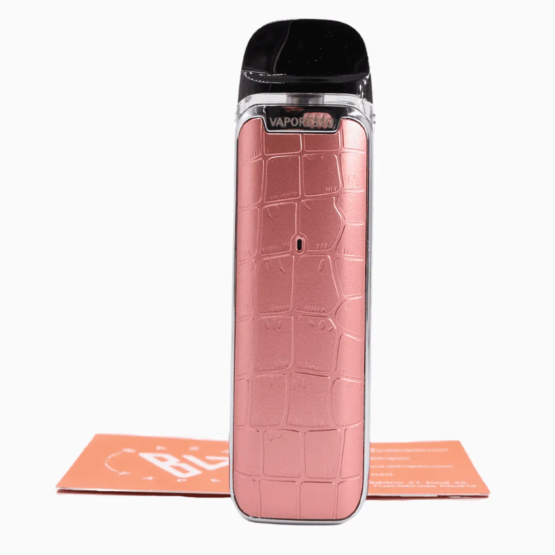 El Vaporesso Luxe Q, se caracteriza por ser de estos dispositivos de la gama Luxe que son más compactos y ligeros: se encapsula todo su potencial en un tamaño reducido. El material con el que se ha fabricado es una aleación de zinc a la que se le ha aportado textura para que simule la piel de cocodrilo. Así bien, es un pod que representa la mejor unión entre estética y rendimiento.